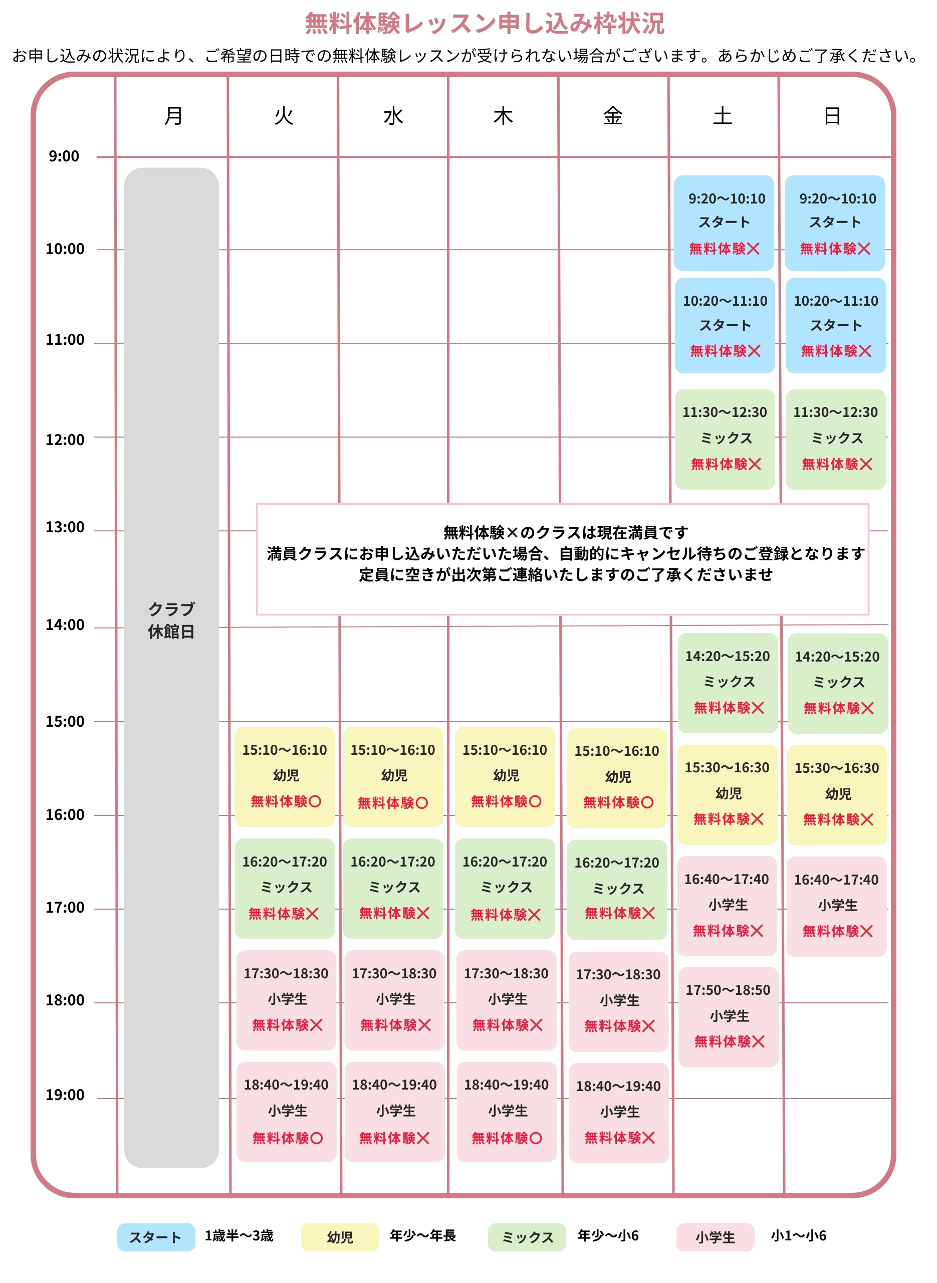 | 幼児クラス 小学生クラス ミックスクラス |